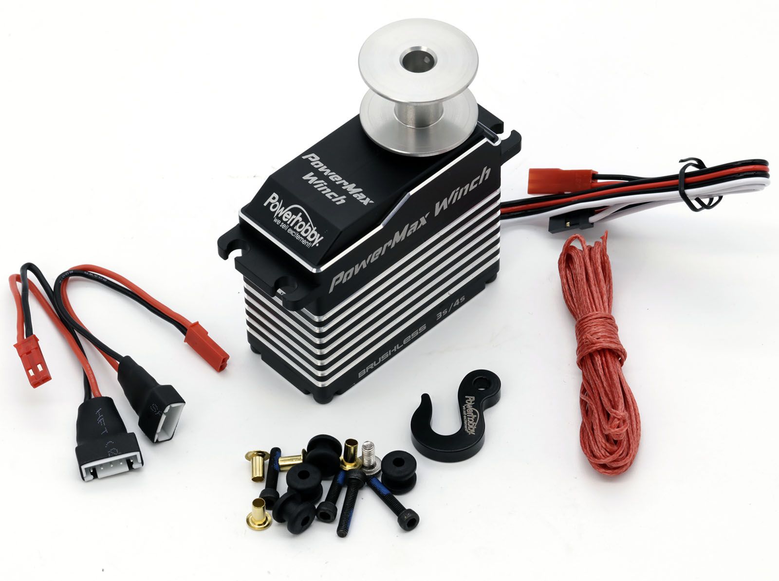 Powerhobby POWERMAX WINCH 1/5th Scale High Torque High-Speed Brushless 3S / 4S Servo + Axial SCX6 Aluminum Front Bumper Servo Winch Mount