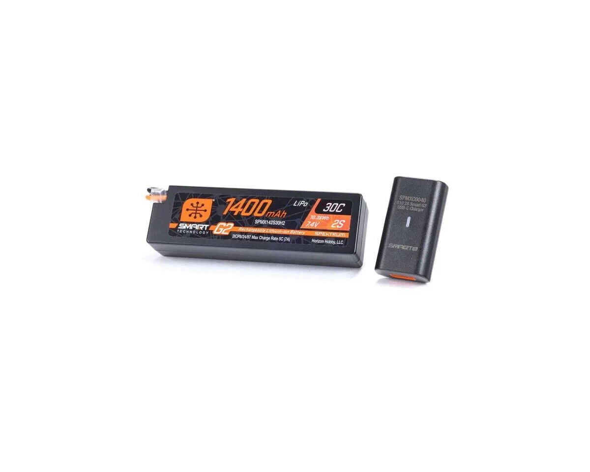 Powerful Spektrum 2S LiPo battery and safe, easy-to-use Smart charger