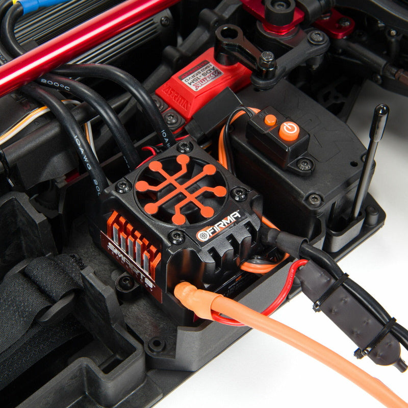 The ready-to-run INFRACTION 6S BLX 4WD 1/7 scale truck tops off a tough and powerful ARRMA brushless platform with stunning style — ideal for intermediate-level drivers who are eager to experience street bashing at 80+ MPH speeds (achievable in optimum conditions using a 6S LiPo and the included speed pinion gear). Its Spektrum DX3 radio and Smart brushless power system components provide real-time telemetry that also helps you reach and maintain maximum performance.