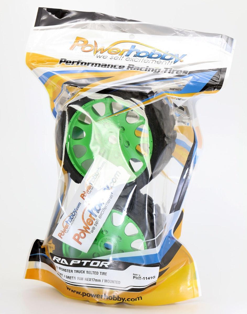 Powerhobby Raptor Belted Monster Truck Tires / Wheels w 17mm Hex (2) Sport Compound GREEN