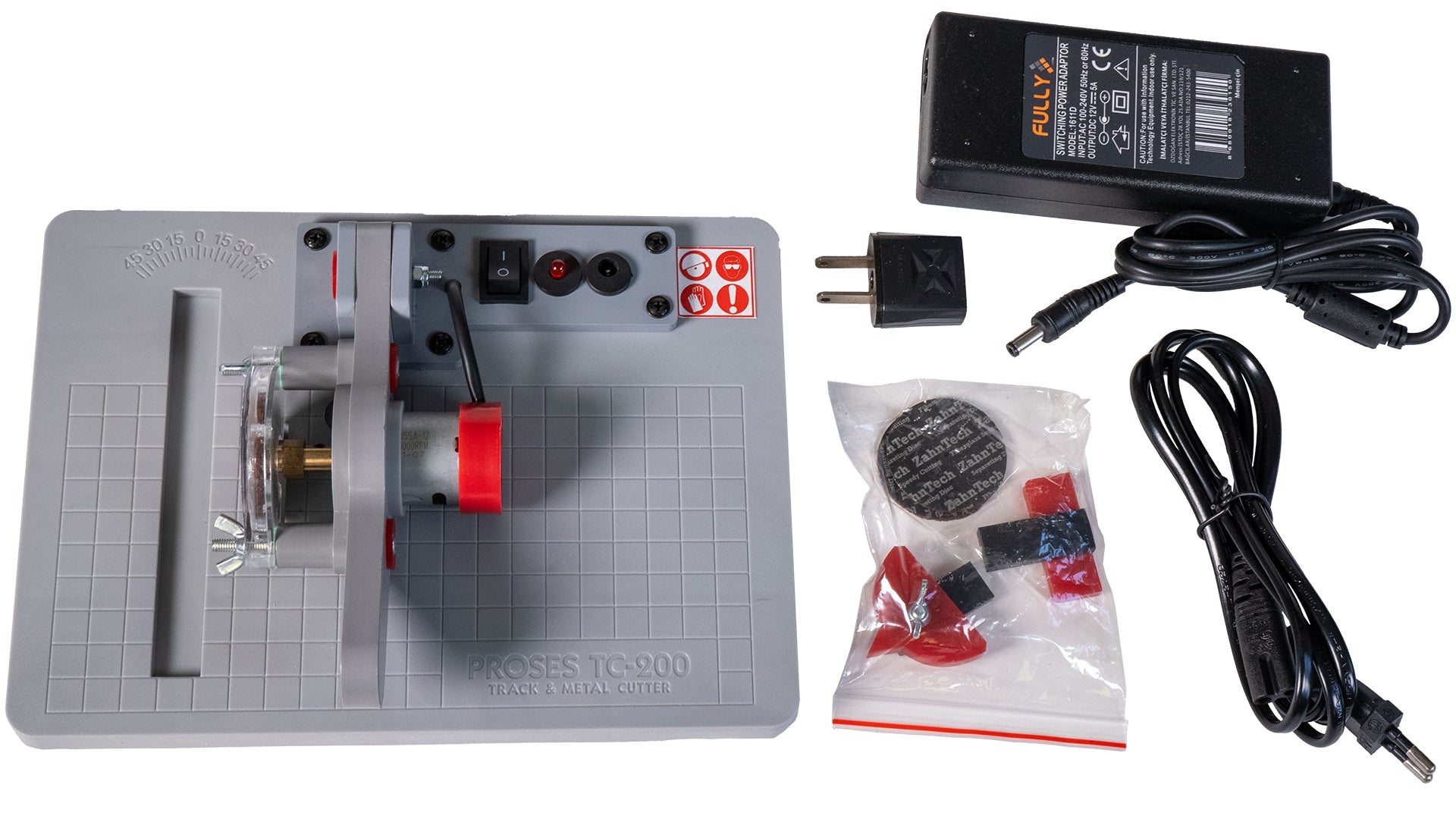 Now you can power through cutting HO and N scale track. This handy tool also lets you cut soft non-ferrous metal for modeling projects. Includes track cutting tool, AC/DC power adapter, cable, and spare cutting disks.